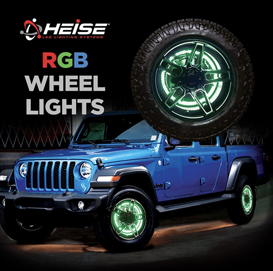 HOLLY HILL, FL (01.26.22) – Heise LED Lighting Systems by Metra Electronics is now shipping three new sets of LED wheel lights, available in 14-inch, 15.5-inch, and 17-inch sizes, for RGB, RGBW, and RGB chasing light options. These wheel rings have sturdy metal frames that are constructed from anodized aluminum and lined on two sides with IP68 rated LEDs to produce a brighter glow. The light ring sets include stainless steel hardware, harnesses, and have water-resistant connectors for a long-lasting installation. The lights mount to the OE disc brake shield and have thread locking adhesive included for a worry-free install.