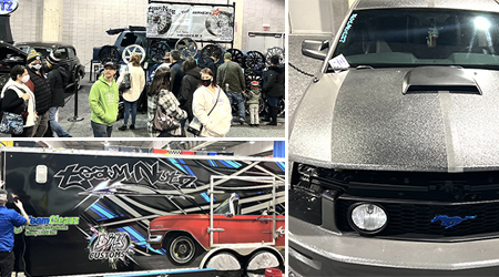 For Team Nutz Ed Nuttall stated “Our booth was filled with demo vehicles, a big selection of wheels, OEM Display, a Marine display, a wide variety of product displays plus live installations of vehicle wraps, bed liner jobs, paint protection polishing, window tinting, leather Katzkin seat installations and DSP audio demos. One of the wrap demos projects was a full wrap of our new 24’ Team Nutz Trailer. With bed liner we are actually coating the bodies of pickups and cars. A Mustang in our booth was an example that drew a lot of attention.”