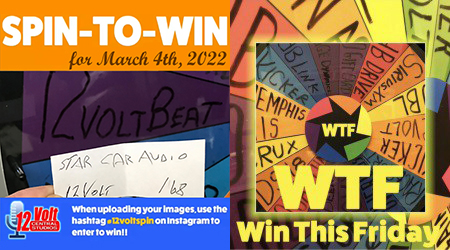 SHREVEPORT LA (03.05.22) WTF…Win This Friday. Star Car Audio won the 12volt News prize on the 12volt Spin-To-Win Wheel 168 on Friday morning, March 4th.