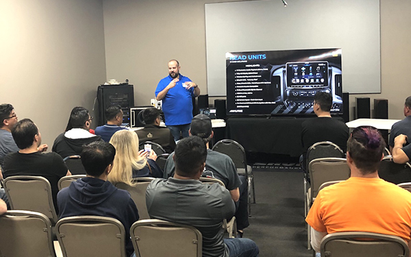 The training was conducted by Alpine’s Texas based Brand Specialist Dan Greenwood and Andy Allen, Alpine Brand Representative, in the well equipped ECD training room. Greenwood also brought the Alpine Ford F-150 Demo Truck equipped with all the new gear for 2022, including Alpine’s brand-new Halo Truck Subwoofer Enclosure.