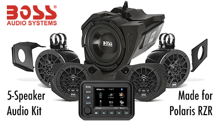 OXNARD, CA (03.30.22) – BOSS Audio Systems has announced the launch of the new five-speaker, vehicle-specific Polaris RZR audio kit. Now available at an affordable ($1549.99 MSRP), the BPRZR5 has been designed for 2014-2019 Polaris RZR XP 900, 1000, and Turbo 2 or 4-seat models. And, for a limited time, each BPRZR5 purchase will also include two free POLCAM plug-and-play front and rear cameras ($156 value) that work in tandem with the kit’s five-inch touchscreen and easily integrate into factory locations.