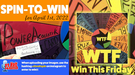The 12volt Spin-To-Win Wheel rolled for 172nd time on Friday morning April 1st. The Wheel landed on the Power Acoustik space and the Automotive Entertainment HB slip was drawn from the jar. An Instagram post of the winning slip was posted. A video of the wheel spin was also posted.