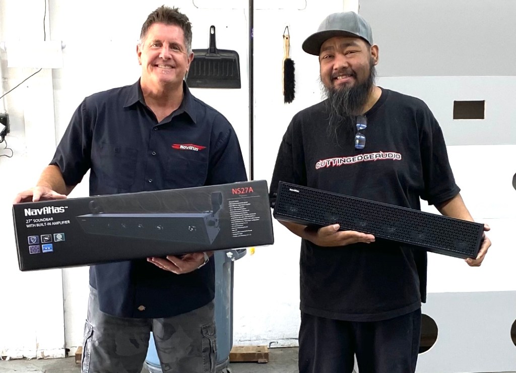 Continuing “Ronnie was very glad to see me arrive. When we opened the NS27A SoundBar box he immediately saw the NavAtlas quality and asked several spot on questions. Then we had a tour of the store and snapped an image in the install bay.”