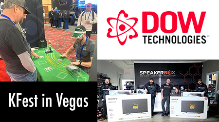 Jay Johnson, DOW Technologies Director, related “At KFest in Vegas we showcased some of our Triton Audio products. In our booth we had a Blackjack table set up where dealers could play to win prizes. If the retailer beat the Blackjack dealer they could pull a card with a prize on it. Anyone could play, even multiple dealers from a store and outside our territory. All dealers attending KFest were invited to play Blackjack at the DOW table. Our Blackjack table sponsors were Sony, Triton, Metra, Alpine, Lucas Lighting and DOW.”