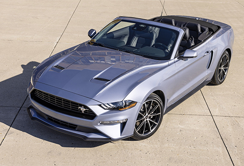 After nearly six decades of continuous production, this sporty stallion mixes American moxie with European lines buffed to a modern sheen. Its turbocharged 2.3-liter 4-cylinder engine develops 310 horsepower to the rear wheels, more than the Mustang’s base V-8 developed 10 years ago.