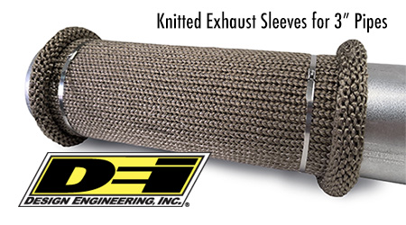 AVON LAKE, OH (05.11.22) – Users asked and Design Engineering, Inc. delivered. DEI’s popular Titanium Knitted Sleeves are now available in a smaller size to fit 3″ to 3.5″ (# 10042) OD exhaust and turbo pipes, up to 36″ in length.