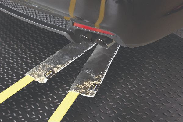 Developed to add a protective layer to dyno straps that run close to exhaust exits or other hot areas of an operating vehicle, the protective sheaths are made of a high-temperature-resistant aluminized material to withstand 500°F direct heat and 2000°F of radiant heat.