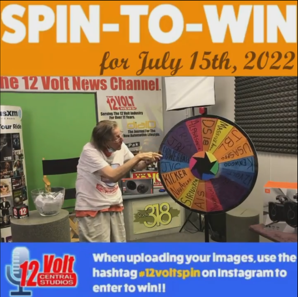 12volt brands with a space on the 12volt Spin-To-Win Wheel include Kicker, NavAtlas, SiriusXM, AIS, PowerBass, CRUX, DS18, JBL, Massive Audio, Kenwood, JVC and USASpec. 12volt News $100. cash awards have spaces on the 12volt Spin-To-Wheel for a winning 12volt retailer.