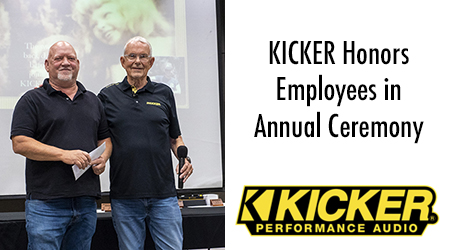 Warranty Manager Clint Cooke was honored for his 30th year of service, Electronics Engineer Bill Doering and General Manager Jay Ralston for 35 years, and Vice President Bob Spencer celebrated his 40th year at KICKER.