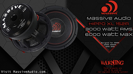 COMMERCE, CA (07.29.22) – For a few years now, the Massive Audio award winning HippoXL subwoofer lineup has been knocking people’s socks off and scaring small children. Behold the HippoXL152R. Massive Audio went a little overboard with the HippoXL152R. Maybe the R stands for Ridiculous. But let’s get serious, as this sub is all about the most serious kind of bass. The HippoXL152R is weighing in with a staggering 430 oz, with a low carbon steel double stack motor, aluminum former and large pole vent as well as added rear venting to ensure years of keeping high temperatures under control during long periods of hammering away.