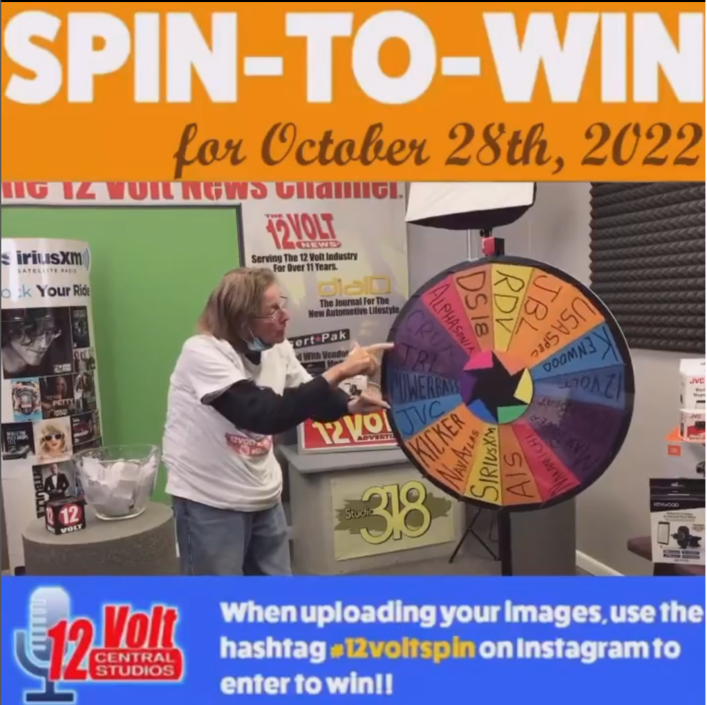 12volt brands with a space on the 12volt Spin-To-Win Wheel include Kicker, NavAtlas, SiriusXM, AIS, PowerBass, CRUX, DS18, JBL, RDV Automotive, Kenwood, JVC, USASpec, Nakamichi and Maximum Power. 12volt News $100. cash awards have spaces on the 12volt Spin-To-Wheel for a winning 12volt retailer.