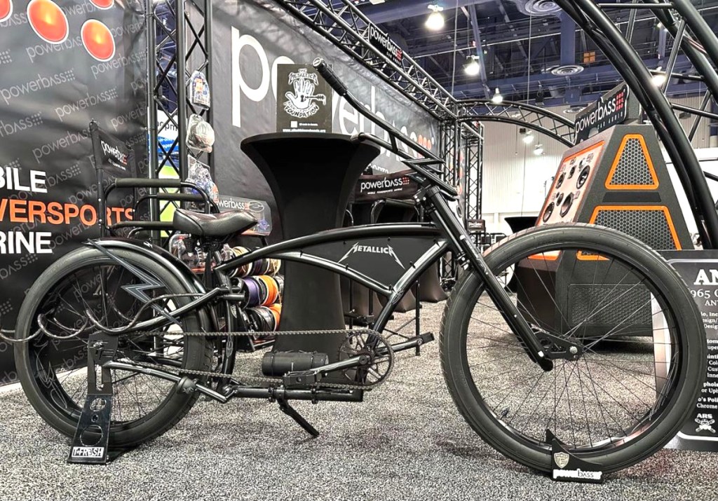 LAS VEGAS NV (11.04.22) PowerBass is proud to partner with friends at T-FRESH / TIMMY FRESH BRAND custom bicycles and their Metallica Themed Charity Auction Bike! The Timmy Fresh Metallica bike has been added as a charity raffle item for the All Within My Hands Foundation to be given away at the Helping Hands Concert & Auction in Los Angeles December 16th!