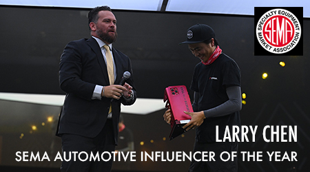 The award is a result of the rise of content creators’ and social media influencers’ impact on the industry. Finalists for the award were selected based on their presence and influence across social media channels, including YouTube, Instagram, Facebook, TikTok, and more. This year’s finalists, which included Larry Chen, ChrisFix, TJ Hunt, Adam LZ and Alex Taylor, were recognized at the SEMA Industry Awards Banquet for their impact on growing the $50.9 billion automotive specialty-equipment industry.