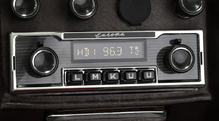 The RetroSound® Europa is an all-new design by Retro Manufacturing inspired by the sophisticated style found in the 1960s-1970s Mercedes vehicles. The replica knobs, large push-buttons, elegant chrome trim, and pinstriping perfectly complement the interior style of theseclassic Mercedes vehicles while updating their audio technologies to today’s standards. A new DIN-Kit is included with the Europa Radio Face to provide an easy installation and OEM appearance. The DIN kit also allows the Europa to be installed in any application with a single DIN opening making it a great choice for other European classics from the era that originally had a single DIN radio.