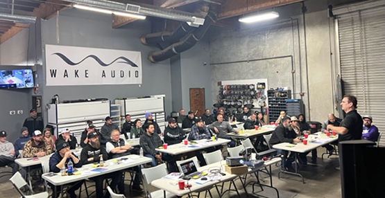 “It was terrific to hold the last of the Wet Sounds trainings in the Wake Audio facility. Over 40 people attended with a couple of dealers driving from 2 and 3 hours away. Alex Aldma and his partner virtually insisted we hold the session in their facility. They arranged the shop and placed tables and chairs with room for the make your taco area for dealers. Wake Audio is a very top Wet Sounds dealer and they load 25’ and larger Malibu boats from top to bottom with Wet Sounds Marine.”