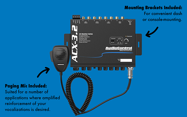 CLEARWATER, FL (12.21.22) – The AudioControl ACX-3.2 all-weather sound processor is a high-output pre-amp, for all systems on-road, off-road or off-shore. The ACX-3.2 can serve as the main control unit in your audio system, allowing you to control the output to all of your amplifiers.