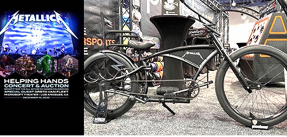 LOS ANGELES, CA (12.30.22) – The Microsoft Theater was packed for the Metallica Concert. The Metallica Helping Hands Charity Auction was recently completed. PowerBass was proud to partner with friends at T-FRESH / TIMMY FRESH BRAND custom bicycles and their Metallica Themed Charity Auction Bike!