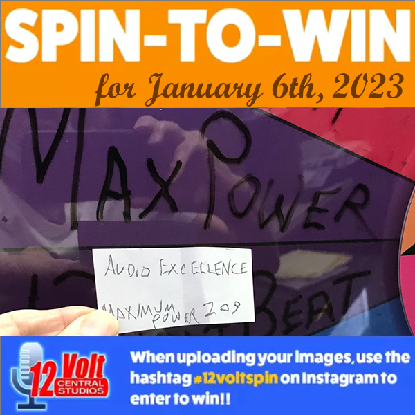 The 12volt Spin-To-Win Wheel rolled for 209th time on Friday morning January 6th. The Wheel landed on the Maximum Power space and Audio Excellence slip was drawn from the jar. An Instagram post of the winning slip was posted. A video of the wheel spin was also posted.