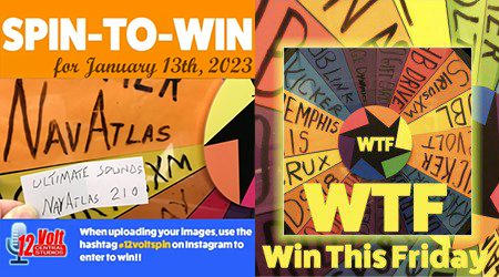 The 12volt Spin-To-Win Wheel rolled for 210th time on Friday morning January 13th. The Wheel landed on the NavAtlas space and Ultimate Sounds 1 slip was drawn from the jar. An Instagram post of the winning slip was posted. A video of the wheel spin was also posted.