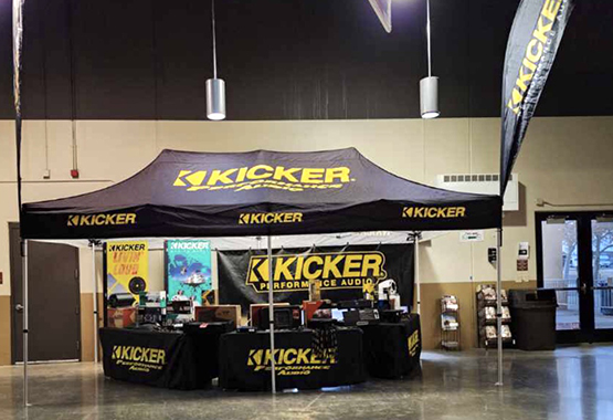 KICKER had a booth set up in the lobby with a wide selection of products set up on tables under the tent. AMA Arenacross attendees are definitely interested in audio products as many enjoy motorcycle, PowerSport, Lifestyle and/or marine activities in addition to their everyday drives.