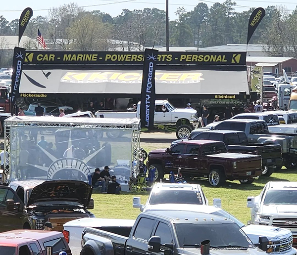 CONROE, TX (02.28.23) – KICKER was on site in Conroe and sponsored the Lone Star Throwdown (LST) for the sixth straight year, with its 83-foot rolling showroom – the XRV (Xtreme Recreational Vehicle). The XRV displayed the complete line of KICKER audio gear and houses the “Boom Room” with an entire wall full of 15-inch, Solo-Baric L7S subwoofers and 40,000 watts. The show was held Feb. 24-26 at the Lone Star Expo Center in Conroe, Texas.