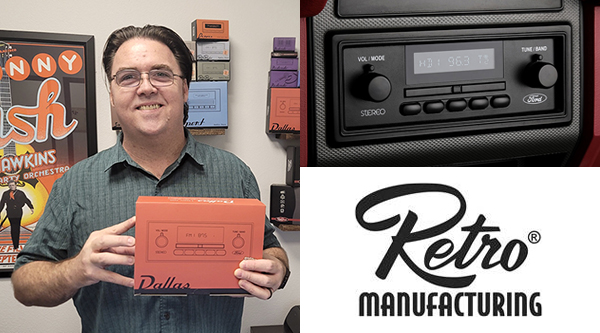 HENDERSON, NV (03.09.23) – Joe Rock, Retro Brand Manager, proudly shows the new Dallas Radio Face for Ford F-Series and Broncos 1985-1986 in the company’s Henderson NV HQ.