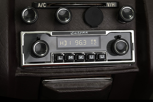 HENDERSON, NV (03.10.23) – The RetroSound Europa is an all-new design by Retro Manufacturing inspired by the sophisticated style found in the 1960s-1970s Mercedes vehicles. The replica knobs, large push-buttons, elegant chrome trim, and pinstriping perfectly complement the interior style of these classic Mercedes vehicles while updating their audio technologies to today’s standards. A new DIN-Kit is included with the Europa Radio Face to provide an easy installation and OEM appearance. The DIN kit also allows the Europa to be installed in any application with a single DIN opening making it a great choice for other European classics from the era that originally had a single DIN radio.