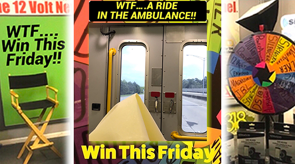 WTF… Where’s the Fun. On the next spin of the 12volt Spin-To-Win Wheel… on Friday, April 28th