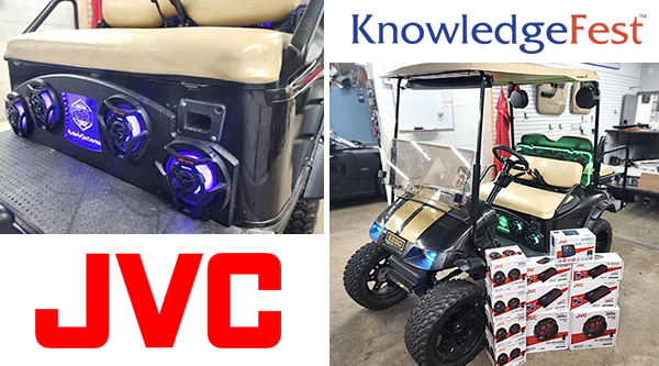 Josh Glenn, Audio Electronics owner, related “Our local JVC representative contacted us about the project and it all came together. We were planning to attend Knowledgefest in our hometown so this was a natural. We also had the idea we could then utilize the golf cart for future promotions so we arranged for a golf cart and JVC supplied the products.”