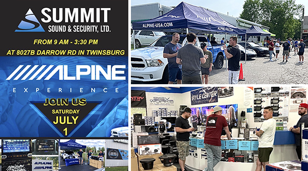 TWINSBURG, OH (07.05.23) – The Alpine Experience was set early Saturday morning July 1st in the parking area in front of Summit Sound & Security. Chris Reavis had the Alpine RAM positioned under the Alpine tent well before the doors opened. When the doors opened at 9AM enthusiasts from the area were ready to experience the latest from Alpine.