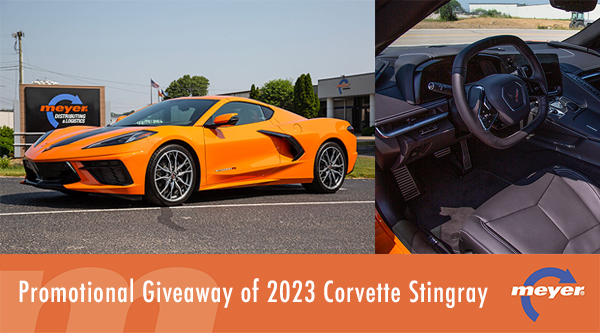 JASPER, IN (07.12.23) – On July, 1 st 2023 Meyer Distributing launched its giveaway of a 2023 Corvette Stingray. Qualifying customers will be placed in a random draw, and one lucky grand prize winner will be announced at our 2024 Meyer RV Mega Show in French Lick, Indiana. Must be present at our show to win. Running from July 1st, 2023 until December 31st, 2023 growth in purchases of products from participating brands will qualify customers for entry.