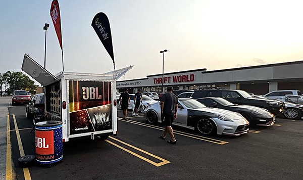 On Saturday evening, July15th, in Independence MO Pace was set up with the JBL/Infinity demo trailer on the Noland Road Cruisin’ Strip. “Along the Noland Road strip of a couple miles there are 3 shopping centers that allow car shows and demos to take place. Noland Road is a magnet for classic cars and hot rods. The center we were in has an AutoZone which is obviously a draw for vehicles. Food trucks also pass along the strip to make this a very busy time from 6 until 10 PM” Pace related.
