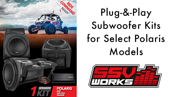 “With a thumping 1,000 Watt MAX (500 Watt RMS) SSV Works V-Series subwoofer, these kits are a perfect and easy add-on to select Polaris models that come with stock factory audio that don’t include subwoofers,” explained Trevor Kaplan, SSV Works CEO. “Complete with pre-installed subwoofer, subwoofer enclosure, 500-watt Kicker mono amp, and plug-&-play wiring, these SSV Works kits add deep, clean bass to your system and could not be easier to install.”