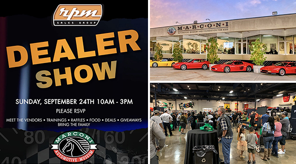 TUSTIN, CA (09.27.23) – “We are very happy to report the RPM Annual Dealer Show connected industry players, enthusiasts, and families as we envisioned. The event was set against the backdrop of the Marconi Auto Museum which a haven for automotive enthusiasts throughout the area. Our Annual Dealer Show 2023 delivered an experience that engaged and delighted attendees of all backgrounds” Eddie Ramirez related for RPM.