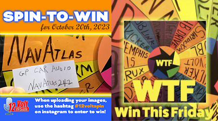 Past winners of the 12volt Spin-To-Win include…Stereo & Video Center-Tyler TX, The Outlaw Garage-Franklin TN, Exotic Sounds-West Palm Beach FL, Endless Possibilities-Aurora IL., Go Auto Sound in Union City NJ, Al&Ed’s South Bay CA, No Limitz Car Audio in Upland CA, Neil’s Specialty-Eureka CA, Sturgess Customs-Lexington SC, Audio By Art-San Antonio TX, SMS Car Audio in Marreo LA and Sweet Wheelz in Mississauga Ontario Canada, Cartronics in Biscayne FL, The CarAudio Shop in St Louis MO, Exotic Sounds in West Palm Beach FL, High North Customs in Grand Prairie Alberta Canada and AMS Audio in Bakersfield CA, Team QRT in Abbeyville LA and California Sound in Fontana CA and Jackie Cooper Electronics, Oklahoma City OK, MARS Audio-Orlando FL, All American Audio in Nutley NJ, Proline Car Stereo in Brooklyn NY, Custom Shop Miami, Tunes and Tint in Lakeland FL, Mobile Concepts Inc in Mokena IL, Seismic Auto Sound in Concord CA, Brooklyn Car Audio in Brooklyn NY, Audio Solutions in Florence MS, Enhanced Customs in Largo FL, Rayco Auto Clinic, Audio Design in San Jose CA, Go Bass Mode in Florida, Avenue Sound in Freeport NY, Audio Plus in Riverview FL, Stereo Zone in Whittier CA, In-Phase Car Audio in Omaha NE, AutoLife Group, N&H Electronics, SK Customs, Land & Sea, The Audio One, NC Custom Shop,Tint World Orlando, Ricky Smith’s Audio, VIP Custom Woks, Mobile Audio Concepts, Audio Lad, Sound Sensations, Dave’s Stereo, Stereo Design, Badlands Customs, Custom Audio-Erie PA, Voltz Autosports-Bridgeport CT, Infinity Sound and Security-Kissimmee, Autosport Plus-Canton OH, Stereo City Pros in Carmichael CA, Devine Concepts in Naples FL, The Sound Shop in Indian Trail NC, Extreme Performance Audio in Fresno CA, Audio Depot in Arlington TX, Audio Security in Houston TX, Earmark Car Audio and Marine in Lewisville TX, Audio Jam in Bear DE, Stereo City Ontario, Ontario CA, Audio By Art, San Antonio TX, Code Zero Customs in Tulsa OK, Ken’s Car Tunes in Mobile AL, Soundz Plus in Naperville IL, Markland Designs in Lithonia GA, Electronics Plus in Salinas CA, Xtreme Autosports in Santa Clarita CA, Superior Audio Sounds in San Angelo TX, Model Electronics in Ramsey NJ, Texas Dreamz Customs in Spring TX, Wired Electronics in Linden NJ and Intense Car Audio in OKC, OK, Underground Auto in Sarasota FL, Car Toys Tulsa in Tulsa OK, Real Audio in Erie PA, Go Autosound in Union NJ, DFM Stereo in Ukiah CA, Impact Tint and Audio in Tyler TX, Mobile Sound Systems in Arlington TX, Redline Audio and Performance In Spindale NC, Car Audio Land in San Diego CA, Audio X Custom Car Audio in Florence AL, River Oaks Car Stereo in Houston TX, American Radio Orlando in Sanford FL, Illustrious Customs in Woodbridge VA, Remote Start Pros in Lawrence MA, HiPro Audio in Victoria TX, AudioPlanetNY in Huntington Station NY, Endless Possibilities in Aurora IL, Audio Finesse in Santa Monica, Drive Customs in San Luis Obispo CA, Custom Works, Noblesville IN, AtoZ Detail in West Haven CT, Cars 843 in Charleston SC, CarTunes Atlanta in Atlanta GA, Mobile Concepts in Garwood NJ, Duke’s Car Stereo in Flint MI, Infinity Auto Sound, King Car Audio in Norwalk CT, PopTronics in Baltimore MD, Sanford Sound in Sanford ME, Angelvip2474 in Draper UT, Dynamic Car Audio in Baltimore MD, Hi-Pro Audio in Victoria TX, Car Stereo Max in Houston, Pro Audio Center in Richland MS, Rhodes Off-Roads in Farmington MO, Model Electronics in Ramsey NJ, Class A Sounds in Athens OH. Just Audio Video in North Providence RI, CT_Custom in Philadelphia, Audio Solutions in Florence MS and The Audio Shop RC in Rapid City SD, DG Motorsportz in High Point NC, ST Mobile in Texarkana TX, AR Custom OC in Orange CA, Temecula Mobile Sound in Temecula CA, Unique Auto Sound in Lindenhurst NY, D’s Garage in Corona CA and DS2 Mobile Solutionz in Tomball TX, C G Car Audio in Kissimmee FL, California Audio in West Valley City UT and The Action Audio Store in Wethersfield CT, Eclipse Car Audio in Vancouver WA, Electronics Depot Car Audio in Altamonte Springs FL. Car Audio Garage in Pearland TX, Pinnacle Autosound in Lake City FL, J H Audio in Bowling Green VA, The Car Audio Shop StL in High Ridge MO, Anthonys Car Stereo in North Highlands CA, Flynn Audio in Middleton WI, Living Loud Car Audio in Pelham AL, Trail Star Audio in Minnesota, On The Spot Audio in Pennsauken NJ, Animated Car Audio in Essex MD, West Coast Car Audio in Citrus Heights CA, Modified Auto Sound in East Alton IL, Star Car Audio in Hermiston OR, VapeNAudio in Clovis CA, SoundWorks in Millersville MD Eclipse Car Audio in Vancouver WA, J A Custom Audio in Houston TX Jose Electronics in North Hills CA, Sound Proof Car Stereo in Douglasville GA, Auto Additions in Springfield IL, Elite Car Audio in Hollywood CA, Masters Car Stereo in Greenville SC, Audio Plus in Eden NC, Seismic AutoSound in Novato CA, Car Audio Addicts in Pittsburgh PA and AudioKing Tinting in Yakima WA, Arias Tint and Alarms in Duncanville TX, Odeh Car Audio in Gadsden AL, 12volt Specialist in Newark DE, Cutting Edge Audio in San Diego CA, Southern Auto Fab in Lafayette LA, California Sound in Fontana CA, Big Boyz Toyz in Florence SC, 740 Audio in Athens OH and 12volt Outfitters in Hollywood FL., High Quality Auto Sound, Lawrence MA, Custom Car Stereo SC in Spartanburg SC, Zier Box in Dallas TX, Maximum in Manville NJ, Audio Car Stereo in Miami FL, Mach 1 Audio in Washington MO, Doren Car Stereo in Queens Village NY, Side-x-Side Audio in South Charleston WV, Sound Concept in Nanuet NY, Pda Road Gear in Littleton CO and A-Plus Audio and Tinting Newington CT, Audio Electronics in Indianapolis IN, Tint and Sound in Frederick MD, Tint World Wilmington DE, VIP Autoworks in Mentor OH, All Out Audio in Killeen TX, Yong’s Audio in Indianapolis IN, Custom Audio Concepts in Lima OH, Clear Vibrations in Quakertown PA, The Outlaw Garage in Columbia TN, Xpert Car Audio in Layton UT, No Doubt Window Tint in Ardmore OK, San Diego Car Stereo in San Diego CA, 