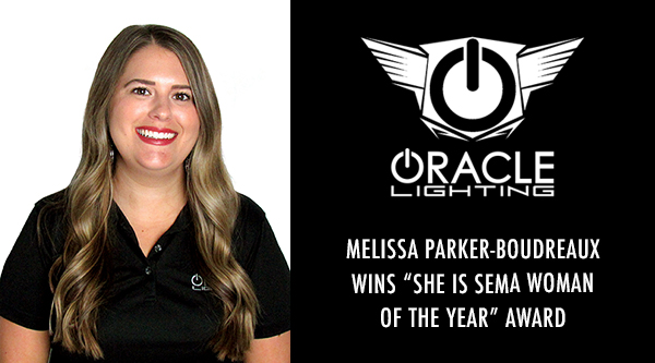METAIRIE, LA (11.03.23) – ORACLE Lighting, the market leader in innovative LED solutions and high-quality automotive lighting products, announces Melissa Parker-Boudreaux has won the annual She is SEMA Woman of the Year award from the SEMA Businesswomen’s Network (SBN). The award was announced at the SBN banquet during the 2023 SEMA Show and recognizes the recipient’s outstanding achievements and contributions in the automotive aftermarket industry.