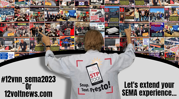 Let’s all work to extend the SEMA 2023 ROI for all across the 12volt industry. The 12voltSTP Tool makes it easy. Snap and Txt an image to 318-469-2526. Presto your activities could be in the 12voltnews.com.