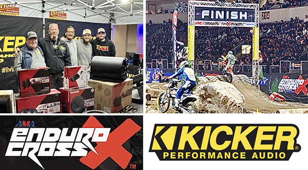 Lorin Morrell, who orchestrates KICKER activities at the EnduroCross events, was joined in the booth by local retailer In Tune and Scott Chapin with Falcon Sales rep firm.