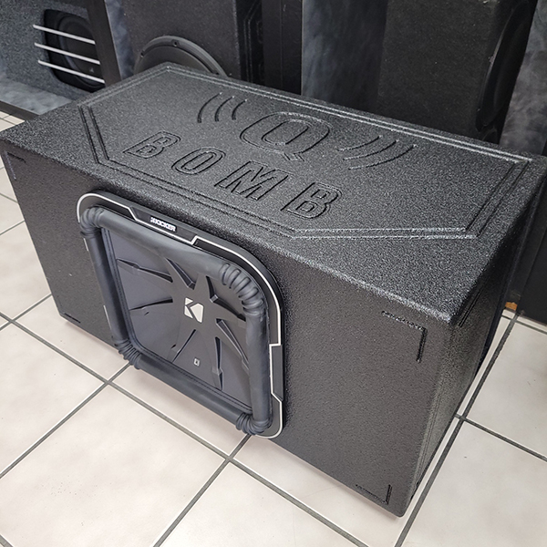 Bund related, “When I called Bryan to see what would be the best Q Power prize for their store he mentioned they had a KICKER L7 in stock. After learning that we thought the best Q Power prize for their store would be our a custom made single 15” vented enclosure designed for the KICKER L7 SQ subwoofer. We take great pride in true Bed Liner spray, which after applied, seals for ever… even after the Livin’Loud pounding a L7 can give! We know their customer will enjoy with the KICKER L7 in the custom Q Power enclosure.”