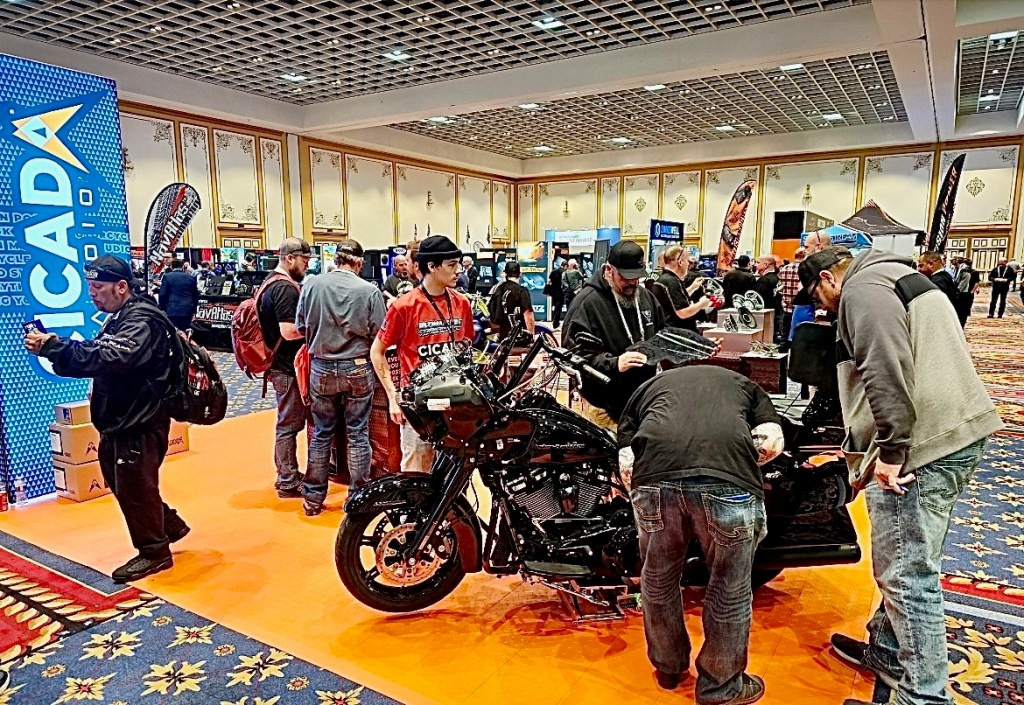 LAS VEGAS NV (02.14.24) Cicada Audio showcased the company’s latest products for motorcycle builds in their very busy new booth on the event floor. From San Jose CA Bagger Audio brought their build, loaded with Cicada Audio, that was spotlighted and rattled the ceiling tiles.