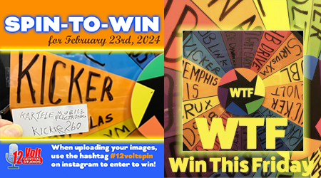 The 12volt Spin-To-Win Wheel rolled for the 260th time on Friday morning February 23rd. The Wheel landed on the KICKER space and the Kartele Mobile Electronics slip was drawn from the jar. An Instagram post of the winning slip was posted. A video of the Wheel spin was also posted.