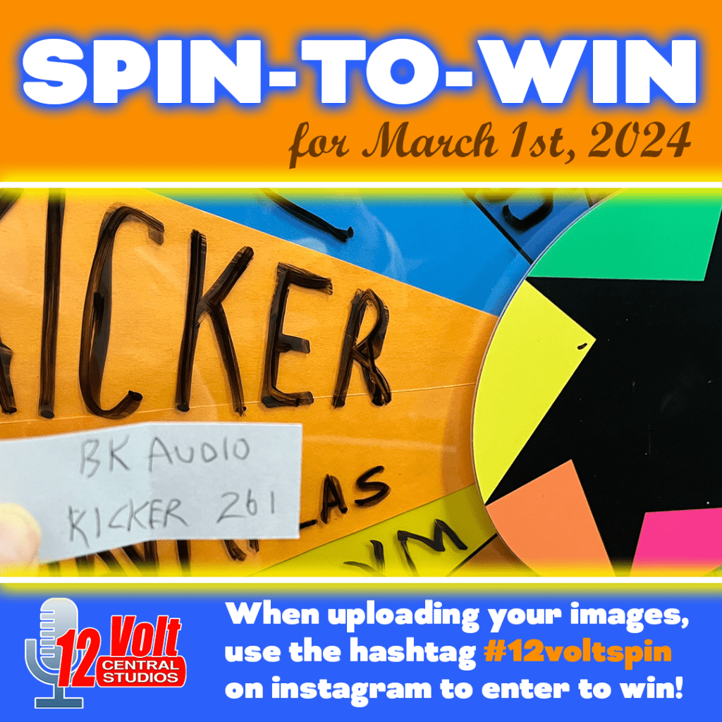 The 12volt Spin-To-Win Wheel rolled for the 261st time on Friday morning March 1st. The Wheel landed on the KICKER space and the BK Audio slip was drawn from the jar. An Instagram post of the winning slip was posted. A video of the Wheel spin was also posted.