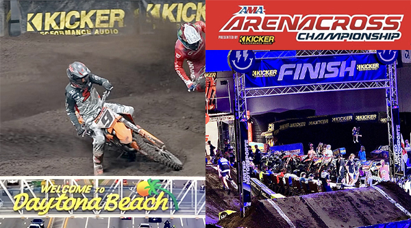DAYTONA BEACH, FL (03.11.24) – THE AMA KICKER ArenaCross 2023/2024 Series was expanded to 14 race dates across the U.S. The series was very busy in Daytona Beach from Friday March 1st through March 9th. The Ocean Center was the venue for the AMA ArenaCross events. The American Flat Track series was also in Daytona Beach at the Daytona International Speedway Short Track for race events.