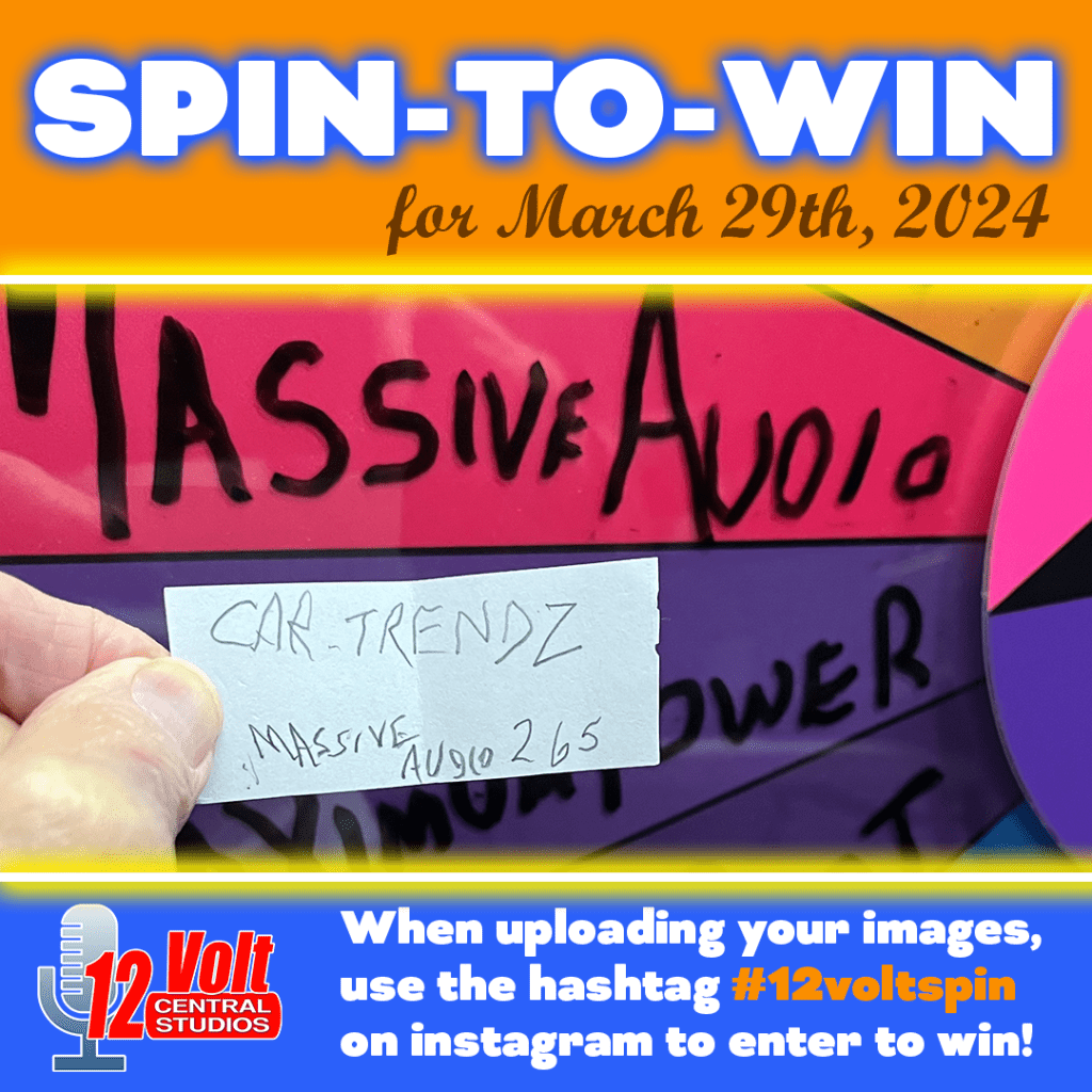 The 12volt Spin-To-Win Wheel rolled for the 265th time on Friday morning March 29th. The Wheel landed on the Massive Audio space and the Car Trendz slip was drawn from the jar. An Instagram post of the winning slip was posted. A video of the Wheel spin was also posted.