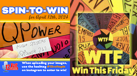 The 12volt Spin-To-Win Wheel rolled for the 267th time on Friday morning April 12th. The Wheel landed on the Q Power space and the Audio Systems slip was drawn from the jar. An Instagram post of the winning slip was posted. A video of the Wheel spin was also posted.
