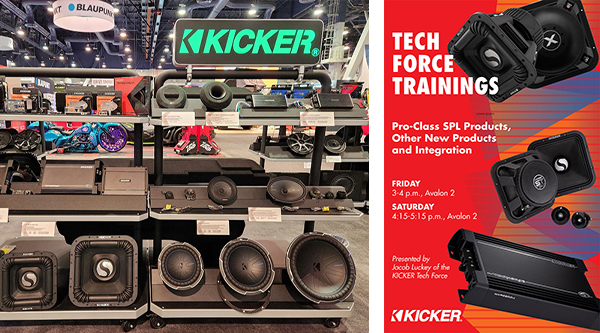 The KICKER Tech Force training crew will provide two trainings during the show, featuring KICKER’s reestablished Pro-Class competition line of products, including ST-Series P.A. Speakers, SoloX Subwoofers, and the anticipated Warhorse Amplifiers. Also, integration classes will help installers quickly determine the equipment needed to integrate aftermarket audio into a factory sound system, using KICKER’s revolutionary FIT and KEY technologies. The first class will be held Friday at 3 p.m., followed by one on Saturday at 4:15 p.m. Show attendees can obtain more information at the KICKER booth.