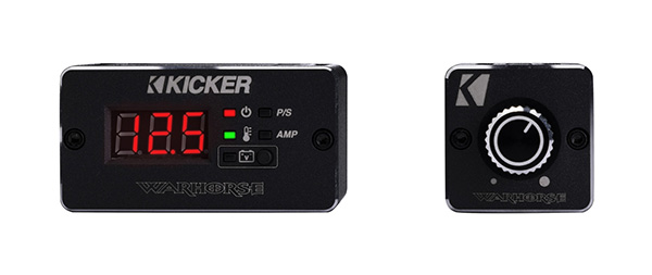 A full line of Warhorse wiring and brass accessories is also being released. Designed to thrive under the extreme demands of high-SPL systems, the lineup includes a four-position battery terminal (with side-post adapter), a six-position battery terminal, fused distribution blocks, a universal RCA bass-level knob with magnetic mounting, and power cable and ground cable in 20-foot lengths featuring 1/0 AWG, full-spec, oxygen-free copper. All are emblazoned with the KICKER Warhorse logo.