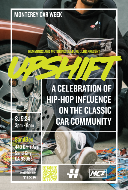 MONTEREY, CA (07.19.24) – Following the excitement of the initial announcement, Hemmings and Motoring Culture Club (MC2) are delighted to reveal further features of “UpShift,” an innovative event that blends the sophistication of classic cars with the dynamic history of Hip-Hop. Scheduled for August 15th at SandBox in Sand City, Calif., this event is set to be a distinctive celebration, breaking traditional boundaries and fostering connections among enthusiasts from diverse backgrounds.