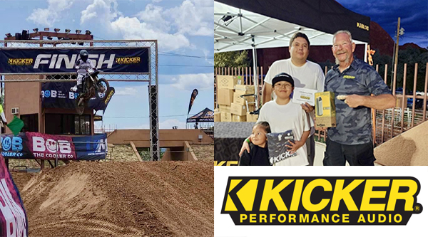 At the event KICKER was definitely ‘Livin’Loud’ as were the riders flyin’ high and making the tight turns on the track. KICKER was set up with a tent at the entryway with many products showcased for attendees. KICKER Audio, Powersports and Lifestyle products were on display. Maddog Media with Lorin Morrell orchestrated KICKER’s activities at the event.