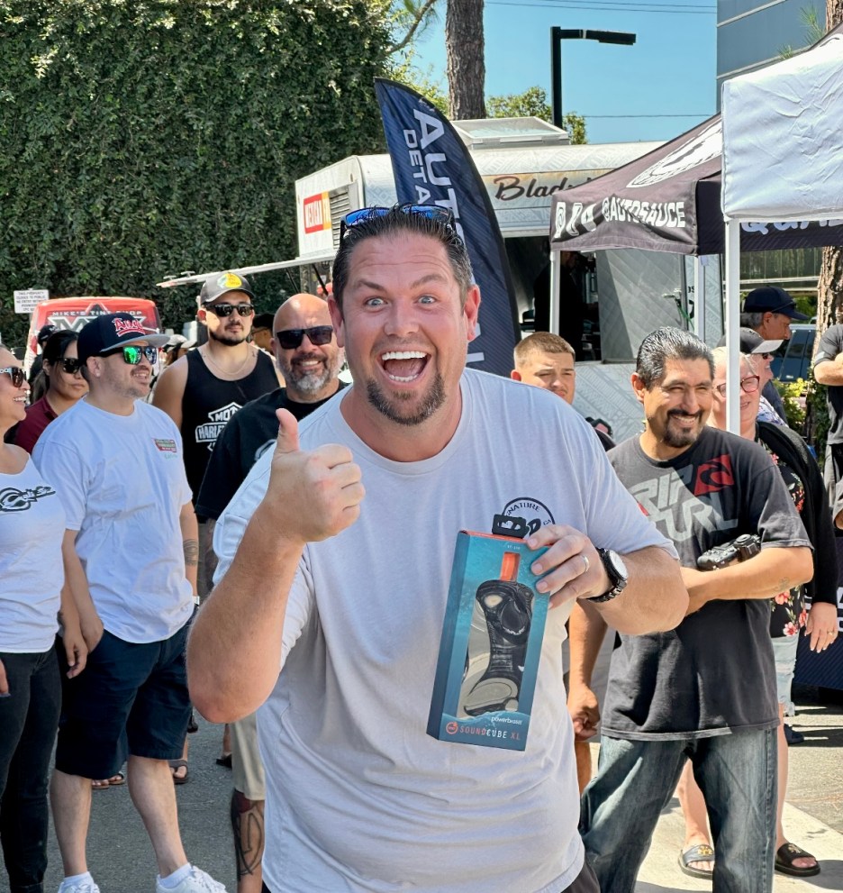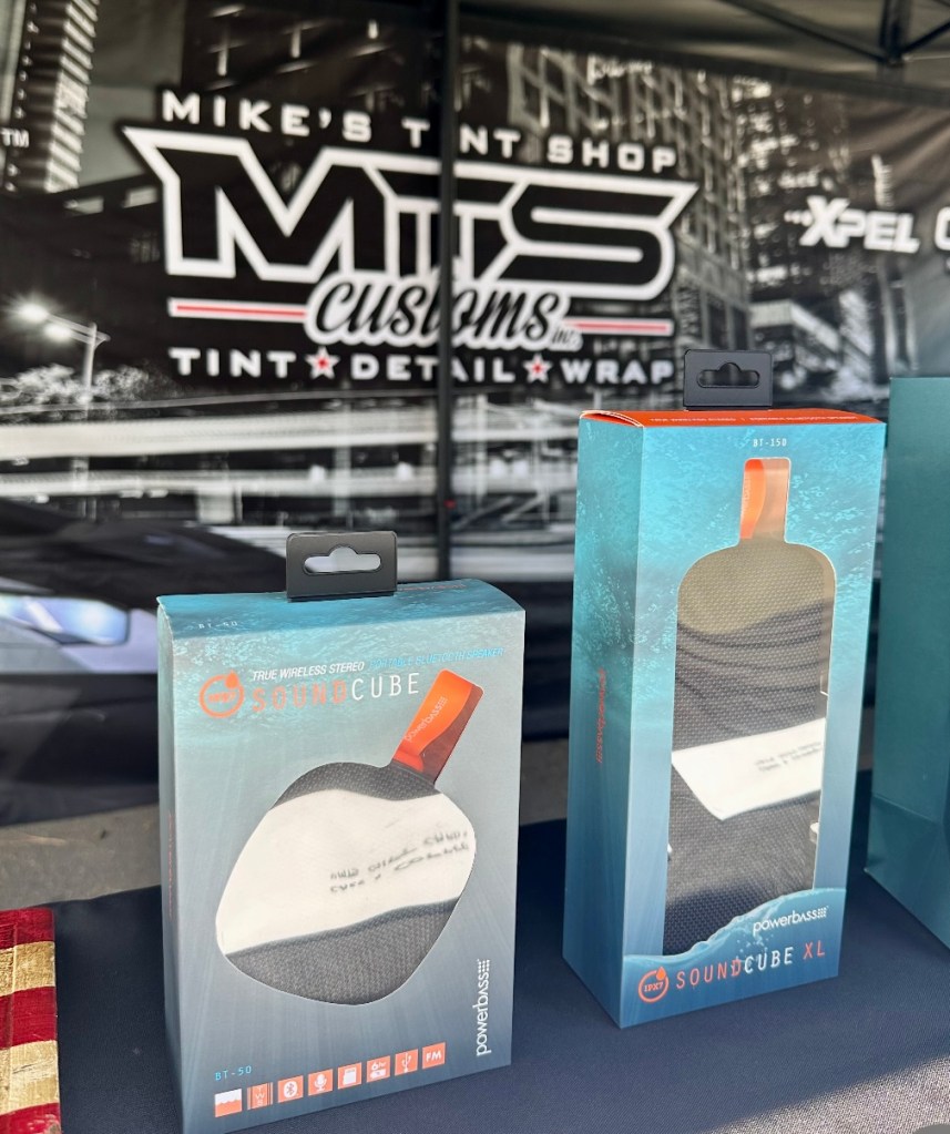 “MTS Customs offers Tint, Detail and Wrap for area consumer and is very active with events to connect with consumers. With that in mind Juan Quintana and I attended the Sunday Cars and Coffee event. We are finding consumers are finding many ways to enjoy music with Bluetooth portables. We have expanded the PowerBass line of Bluetooth portables and decided to attend the MTS event. Saturday the day before we were at the Rifle Supply Mid Summer Bash 2 and many attendees liked our Bluetooth lineup” Erik Harbour, PowerBass VP, stated.